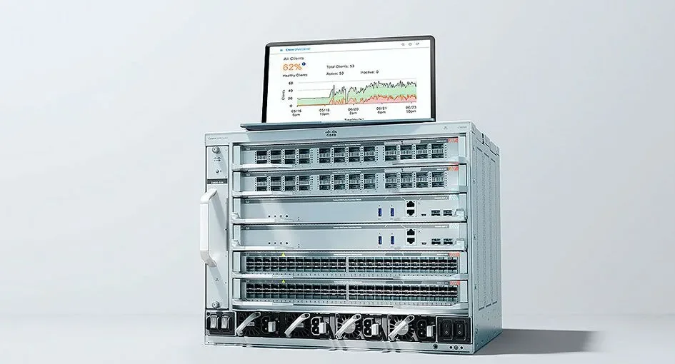 O Cisco Catalyst 9400 é um switch modular que oferece alta flexibilidade e desempenho para redes corporativas e data centers. Principais características: