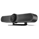 Componentes integrados: câmera Ultra HD com panorâmica/inclinação motorizada, microfone integrado com três elementos de formação de feixe, caixa de som de longo alcance, suporte de mesa/ parede integrado