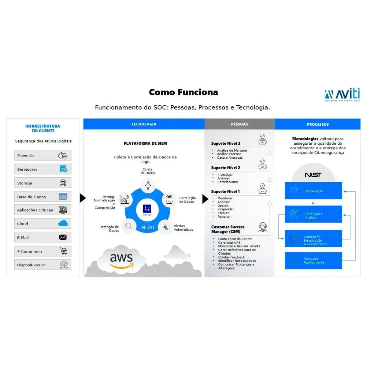 A era da transformação digital traz consigo oportunidades vastas e desafios de segurança complexos. Um Security Operations Center (SOC) garante sua tranquilidade e proteção máxima para seus negócios. Defesa Digital Avançada com Segurança Preditiva AI-Powered SOC Automação via SOAR Observabilidade (Métricas, Log e Traces) Monitoramento de Performance das Aplicações (APM)