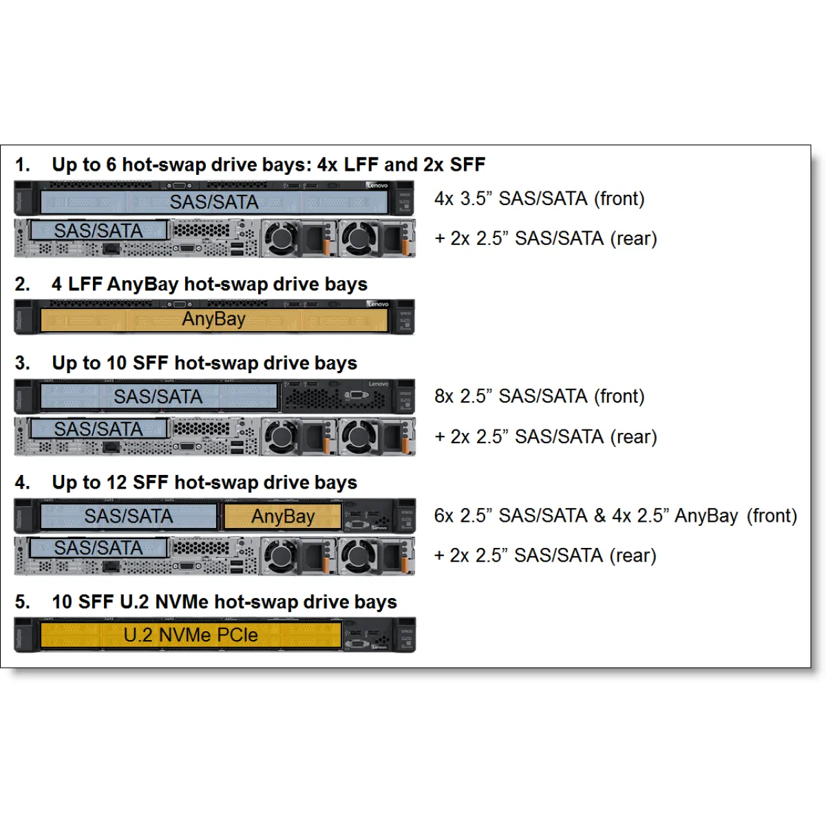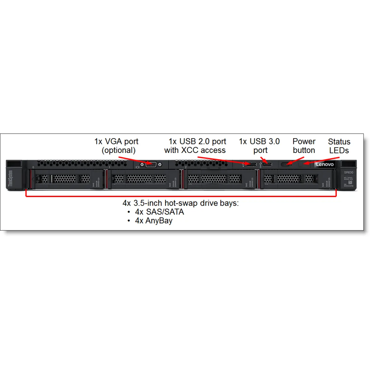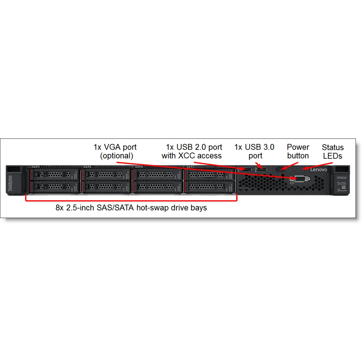 O servidor em rack 1U ThinkSystem SR630 2P versátil e altamente confiável foi desenvolvido para lidar com a maioria das cargas de trabalho do data center, da infraestrutura de TI e HPC à nuvem e hiperconvergência. O ThinkSystem SR630 oferece suporte a análise de dados, nuvem híbrida, infraestrutura hiperconvergente, vigilância por vídeo, computação de alto desempenho e muito mais. O design do Lenovo AnyBay apresenta opções de tipo de interface de unidade no mesmo compartimento: unidades SAS, unidades SATA ou unidades U.2 NVMe PCIe. Com a liberdade de configurar alguns dos compartimentos com SSDs PCIe e ainda usar os restantes para unidades SAS de capacidade, você pode fazer um upgrade para mais SSDs PCIe no futuro, conforme necessário. O Lenovo XClarity Controller é o mecanismo de gerenciamento integrado em todos os servidores ThinkSystem desenvolvido para padronizar, simplificar e automatizar as tarefas de gerenciamento do servidor da base. A execução do XClarity Integrator ajuda a simplificar o gerenciamento de TI, agilizar o provisionamento e conter custos integrando perfeitamente o XClarity em um ambiente de TI existente.