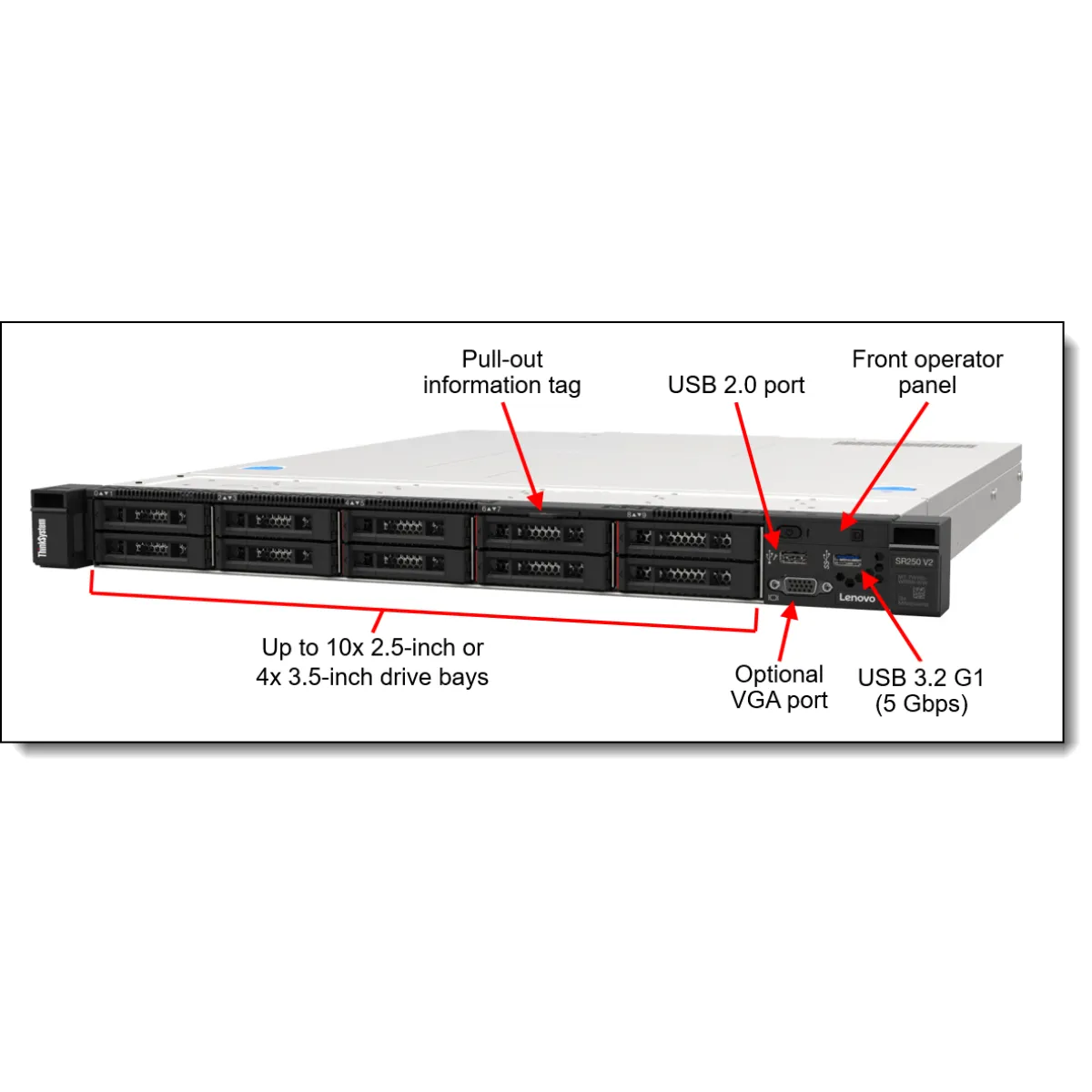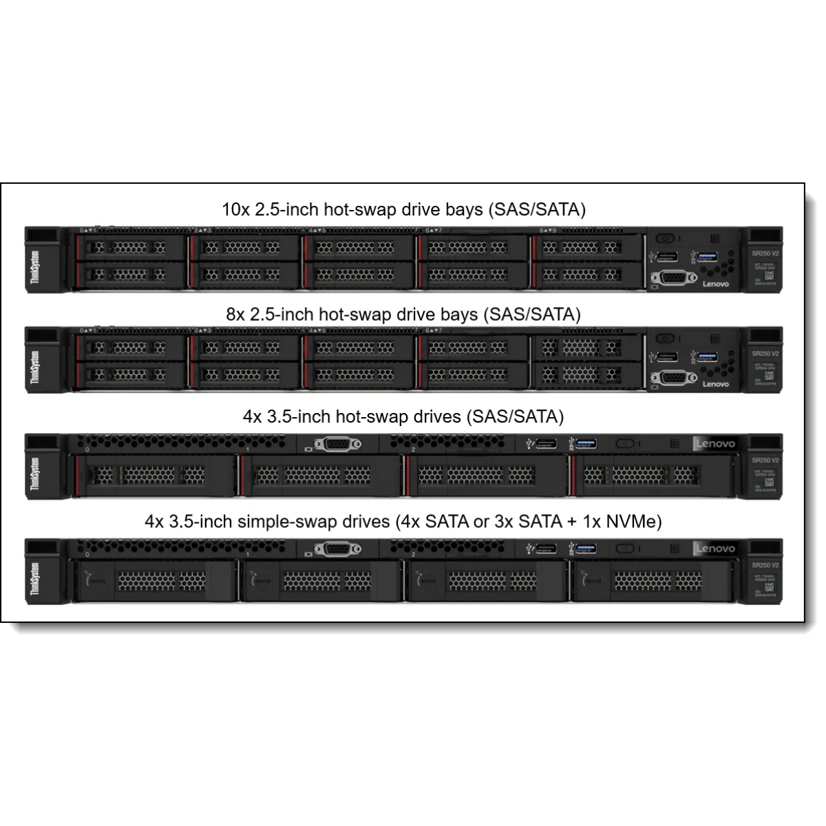 O Lenovo ThinkSystem SR250 V2 oferece confiabilidade e segurança sem sacrificar o desempenho. Este servidor em rack de processador único, em um formato compacto de 1U, foi desenvolvido para negócios em expansão ou implantação de borda. Com um aumento de desempenho de até 17% em relação às gerações anteriores, os processadores Intel® Xeon® E-2300 de nova geração oferecem maior desempenho de carga de trabalho a um preço básico. O ThinkSystem SR250 V2 oferece flexibilidade por meio de várias configurações com memória TruDDR4, suporte a GPU e uma variedade de opções de armazenamento. Ideal para infraestrutura de TI, serviço da Web, virtualização e locais de borda. O ThinkSystem SR250 V2 é uma solução ideal quando sua empresa precisa de um servidor para lidar com grandes cargas de trabalho em um espaço pequeno. Seu rack de menor profundidade cabe nos ambientes pequenos encontrados em muitas PMEs, escritórios remotos/filiais e locais de borda.