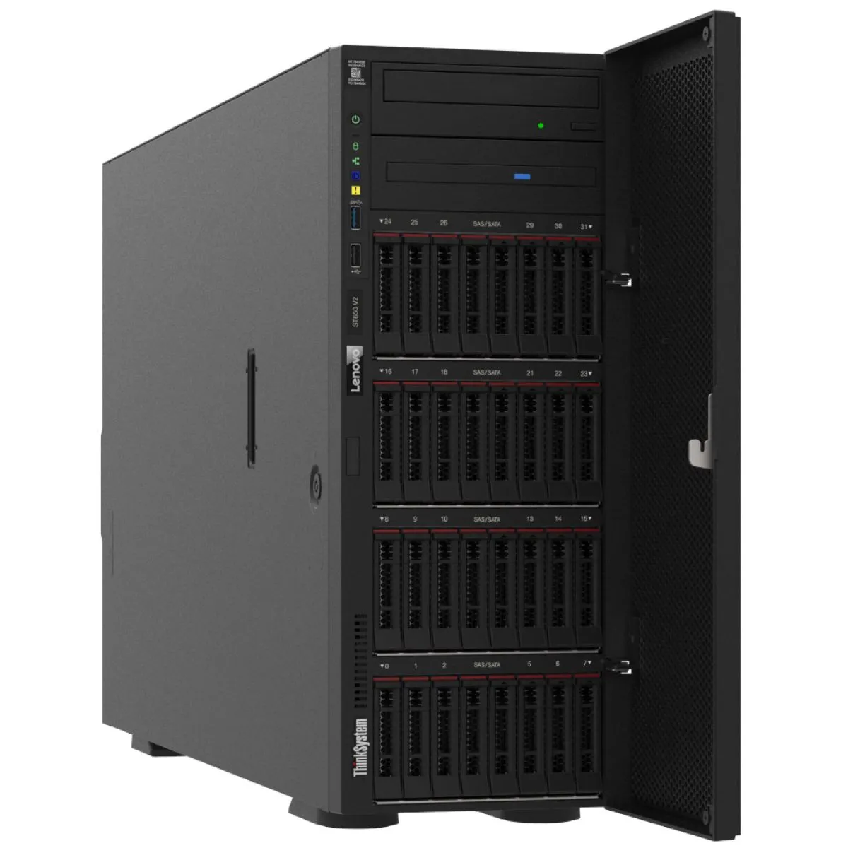 O ThinkSystem ST650 V2 representa a nova onda em sistemas de torre altamente configuráveis para suportar novos casos de uso, tecnologia e otimização de carga de trabalho para a empresa moderna. CPUs da família Scalable de processadores Intel® Xeon® de 3ª geração oferecem excelente desempenho e capacidade de memória para grandes bancos de dados e implantações de máquinas virtuais, com suporte para rede PCIe Gen4, reduzindo os gargalos de dados em todo o ambiente de TI. Melhorias significativas nos recursos de armazenamento integrado permitem que o ST650 V2 lide com o imenso crescimento de dados em ambientes de TI em expansão, principalmente em escritórios remotos e casos de uso na borda. O suporte para até 16 unidades NVMe hiper-rápidas para um total de 32 unidades de 2,5 polegadas permite recursos de ingestão rápida de dados para lidar com a explosão de dispositivos e sensores da Internet das Coisas (IoT) que alimentam o crescimento dos dados. O processamento é transferido para a GPU para maximizar a potência de computação e o desempenho dos aplicativos, e o servidor é otimizado para processar grandes blocos de dados em paralelo. Essa computação paralela de alto desempenho torna o ST650 V2 ideal para cargas de trabalho de IA e VDI de nível empresarial, levando o poder da supercomputação para o escritório remoto.