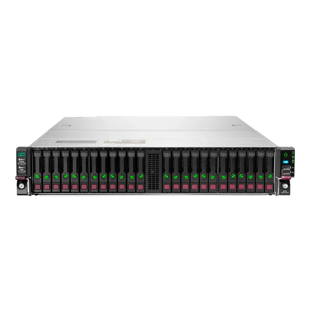 O servidor HPE Apollo 4200 Gen10 oferece uma arquitetura otimizada para análise de Big Data, armazenamento definido por software, backup e arquivo e outras cargas de trabalho com alta necessidade de armazenamento de dados. Seu projeto único 2U, que facilita a manutenção, economiza espaço no data center com até 28 unidades LFF ou 54 unidades SFF com hot-plug. Ele oferece um desempenho acelerado com largura de banda superior e arquitetura equilibrada, processadores Intel® Xeon® e SSDs conectadas a NVMe. O foco em segurança se estende das controladoras de armazenamento validadas de Nível 1 FIPS 140-2 até o nível do silício do sistema, aproveitando ao máximo as inovações da HPE para proteção de firmware, detecção de malware e recuperação. Com o HPE GreenLake Flex Capacity e o HPE Financial Services, você pode combinar os benefícios da agilidade econômica da TI baseada em consumo com o desempenho e a segurança da TI no local.