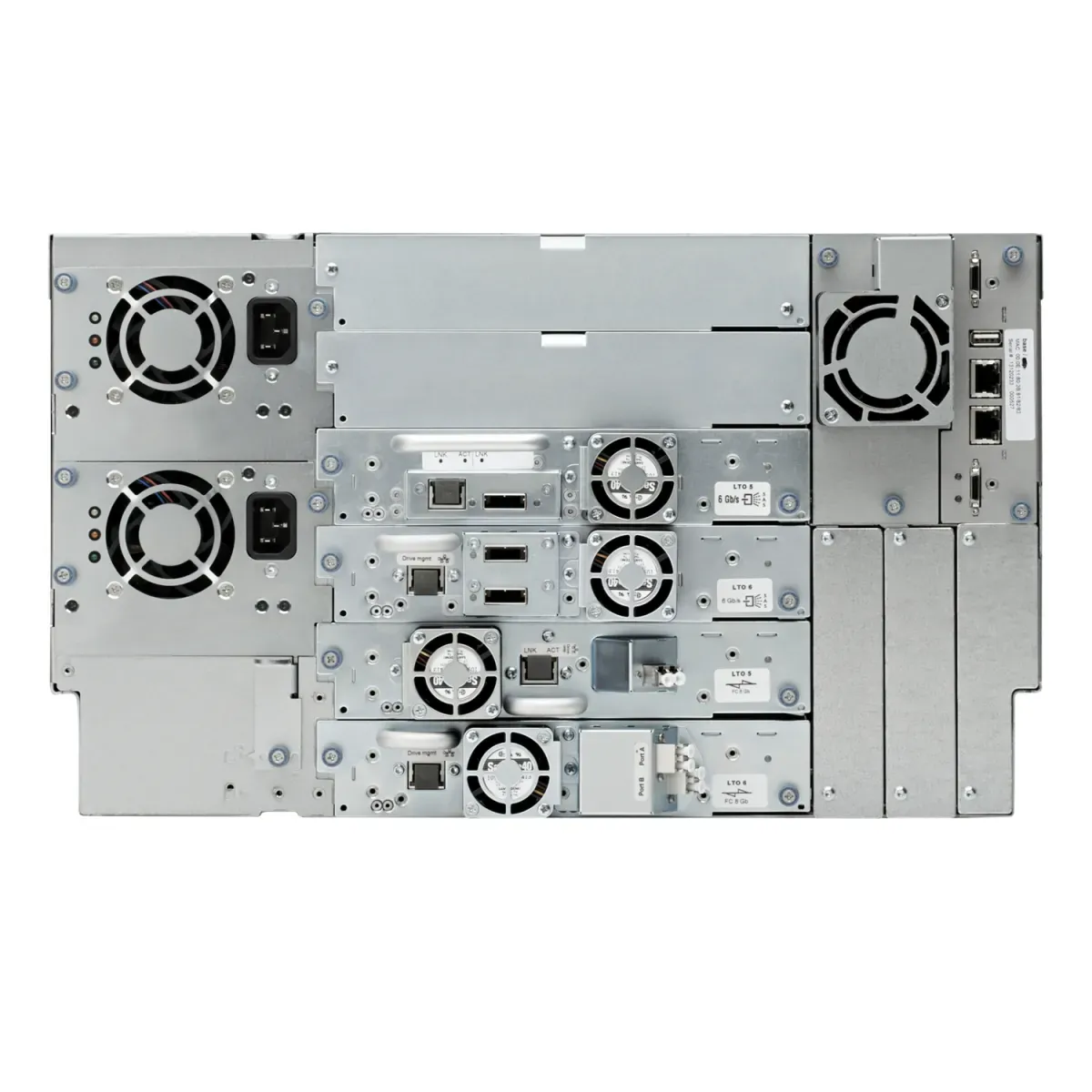 Tipo de unidade: LTO-8 Ultrium 30750, LTO-7 Ultrium 15000, LTO-6 Ultrium 6250, LTO-5 Ultrium 3000 disponíveis com interfaces Fibre Channel ou SAS