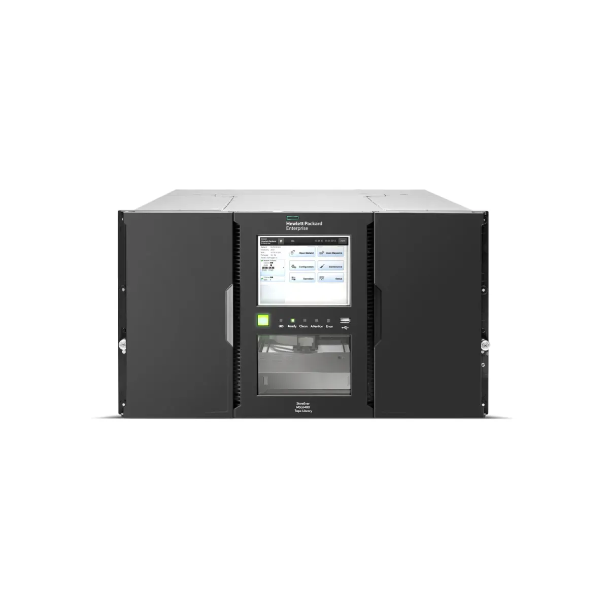 Número de ranhuras para tapes: 80 slots por módulo 6U, escala de 80 a 560 slots em uma biblioteca de fita HPE StoreEver MSL6480 totalmente expandida