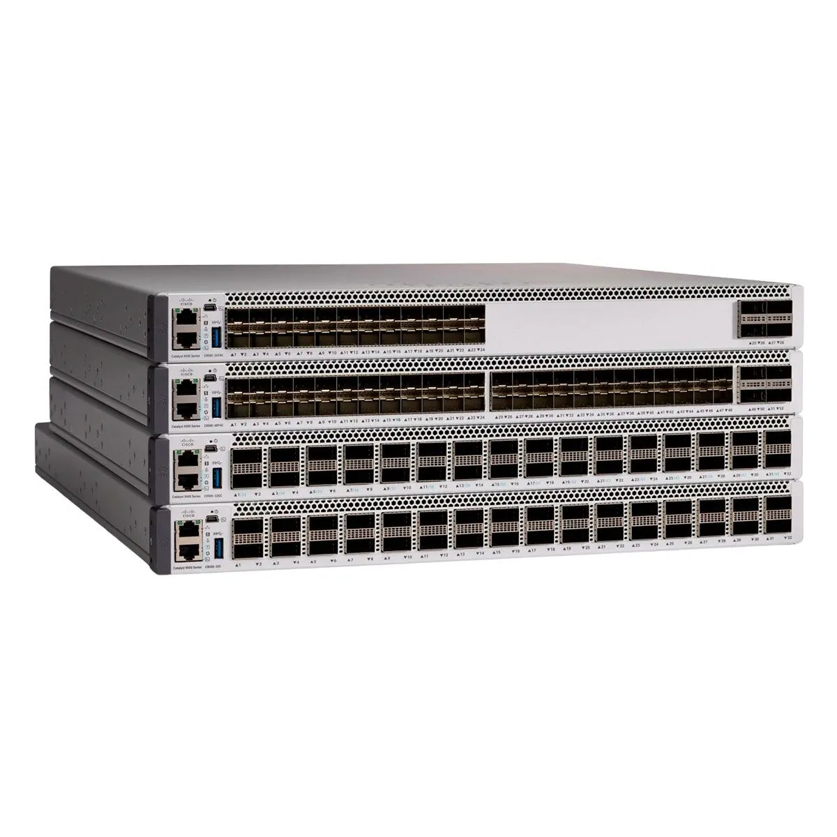 Os switches Cisco Catalyst 9500 são projetados para aplicações de núcleo e agregação de redes, oferecendo desempenho robusto e alta densidade de portas. Principais características:
